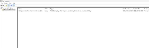 U kunt het script testen door “Rechtermuisklik op de taak” en op ‘uitvoeren’ te drukken. Nu worden uw orders ( als er zijn) klaargezet in JamaData.